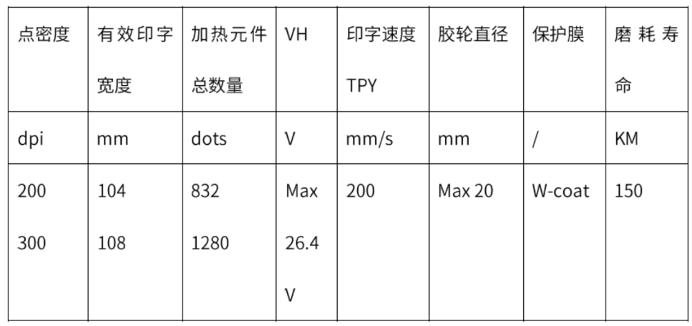 - 优化电阻值,加热元件,涂油层的特性使其适合高速打印
