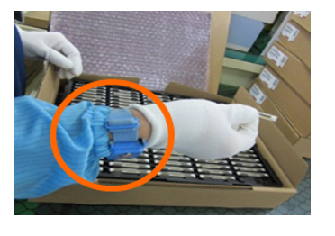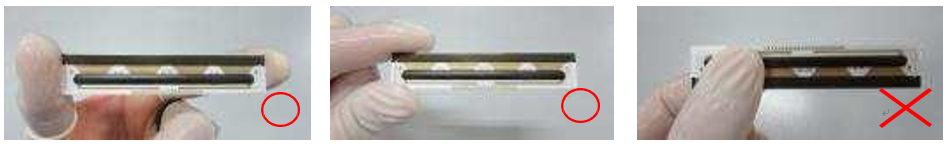 ③ 取出TPH时一是要注意防静电(带手环),二是不要暴力批量拿取。理由是基板的材质为陶瓷硬度较大,如果乱杂叠放,尖尖的边缘会损坏打印头表面的玻璃,保护膜或者保护IC的树脂,重则导致印字不良或者无法打印。