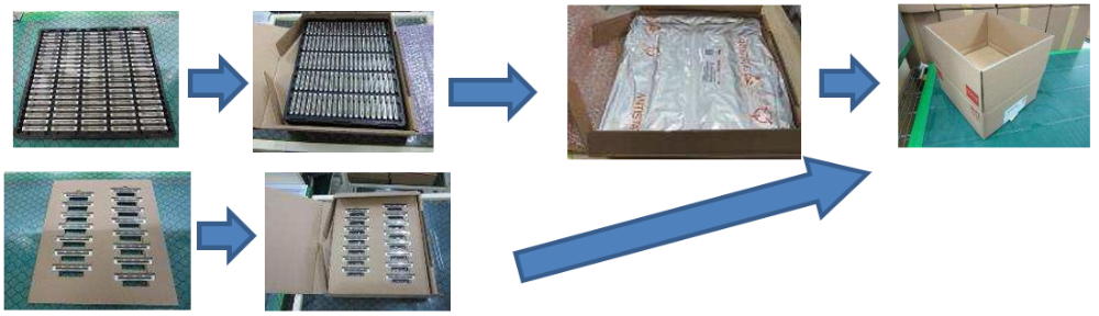 ② 关于包装,生产完成的TPH们被放入纸托盘或者黑托盘里,一部分进行真空包装之后就装箱出货。