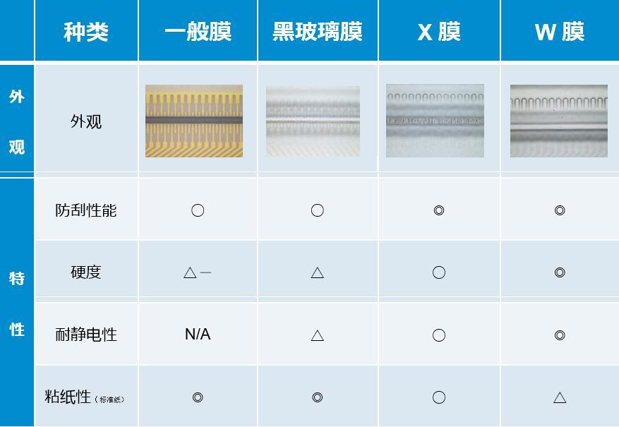 在ROHM量产的机型里主要有4种保护膜,下表就是各种膜的各种参数供大家参考