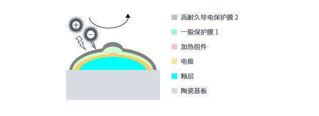保护膜是影响热敏打印头寿命的重要部分,这一期和大家分享一下ROHM为满足从轻松愉快的普通打印条件到严酷的高速・高强度・海量打印条件而研发的各种各样保护膜。在进入正题之前我们先复习下保护膜到底说的是哪一个部分,下图是一个常见的厚膜热敏打印头(下称TPH)断面,这次要讲述的是保护膜1,2的部分,主要的任务是保护加热元件等不受摩擦等的外界侵害。