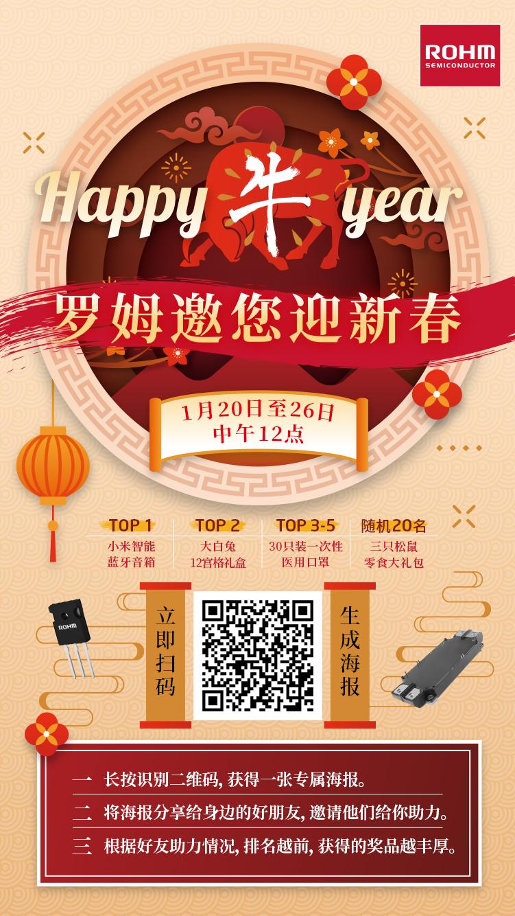 ● 长按识别下图中的二维码或者在罗姆半导体集团公众号(rohmsemi)回复关键词“领年货”,即可获得专属海报作为领取年货的入场券。