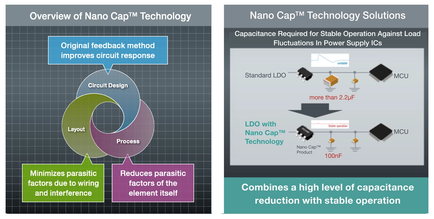 Following innovations centered on nanoseconds (ns) for pulse width and nanoamperes (nA) for current consumption, ROHM's next frontier in power management at the one-billionth-scale focused on capacitance--measured in nanofarads (nF). Capacitance, the ability to temporarily store and release electrical charge, is fundamental to ensuring stable operation in electronic devices.