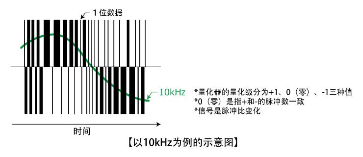 对模拟信号进行过采样,并使用ΔΣ调制将其转换为与模拟信号的幅度相对应的低位数据(比如1位),然后使用数字滤波器去除带外噪声并进行数据抽取处理,从而完成在原始采样频率下向数字信号的转换。