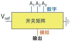 二进制方式是根据电路的构成带有加权数据,以下图R-2R梯形电路为代表性例子。