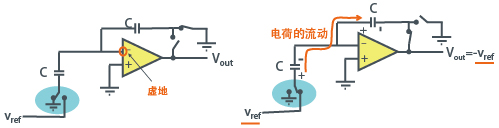 下图是使用了电容器、4bit分辨率的DAC例子。A0~A3无论哪个开关倒向Vref侧,都能得到不同的Vout电压。此时,放大器右边的两个开关同时ON,为了破坏电荷守恒的关系,在时钟信号下导通时间需要不重叠。