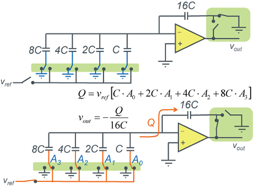 下图是为了展示使用了电容器的DAC想法的概念图。