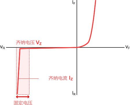 齐纳二极管利用电流变化时电压恒定的特点,用于恒压电路,作为防止IC免受浪涌电流、静电损坏的保护元件使用。其特点是一般的二极管是正向使用,而齐纳二极管是反向使用。反向击穿电压称为齐纳电压 (VZ) 、此时的电流值称为齐纳电流 (IZ) 。近年来随着电子设备的微细化/高功能化的不断发展,要求保护元件具备更高性能,在这种趋势下逐渐拉大与TVS (Transient Voltage Suppressor) 的差别。