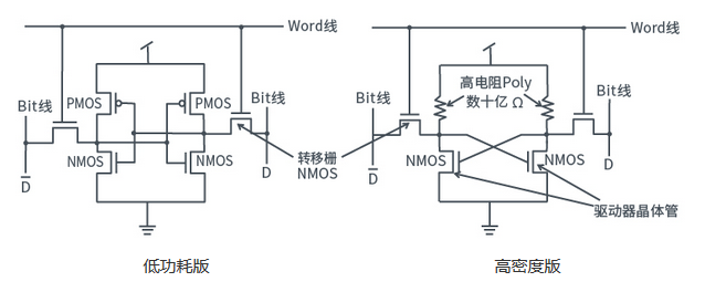 - 由4个晶体管单元(高电阻负载型单元)构成