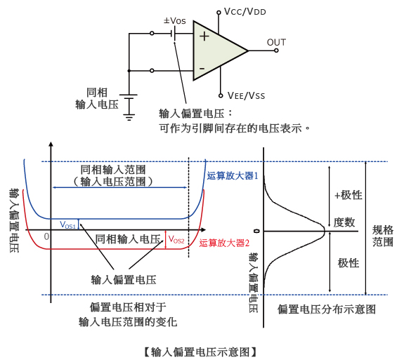 将该输出电压控制为0V所需的输入引脚间的电压差被称为输入偏置电压,该值为输入换算值。