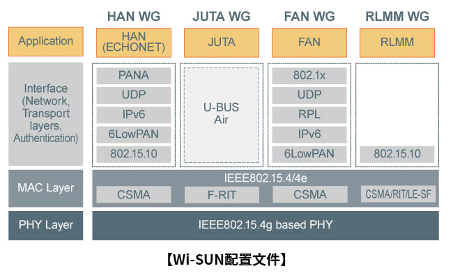 Wi-SUN是符合IEEE 802.15.4g标准的通信方式,以IEEE 802.15.4g为底层协议基础,其上层的配置文件取决于应用。