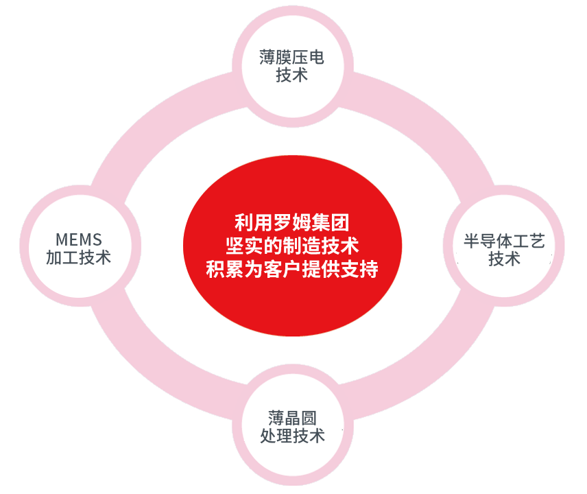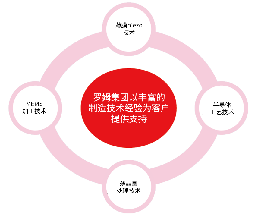 包括使用了硅晶圆和SOI晶圆等的MEMS器件的工艺规划、高性能压电薄膜的生产制造、压电MEMS器件的代加工和设计支持等在内,罗姆可提供从试制、开发到量产的全程支持。即使想了解罗姆官网和产品目录中未列出的个别工艺,也欢迎随时联系。