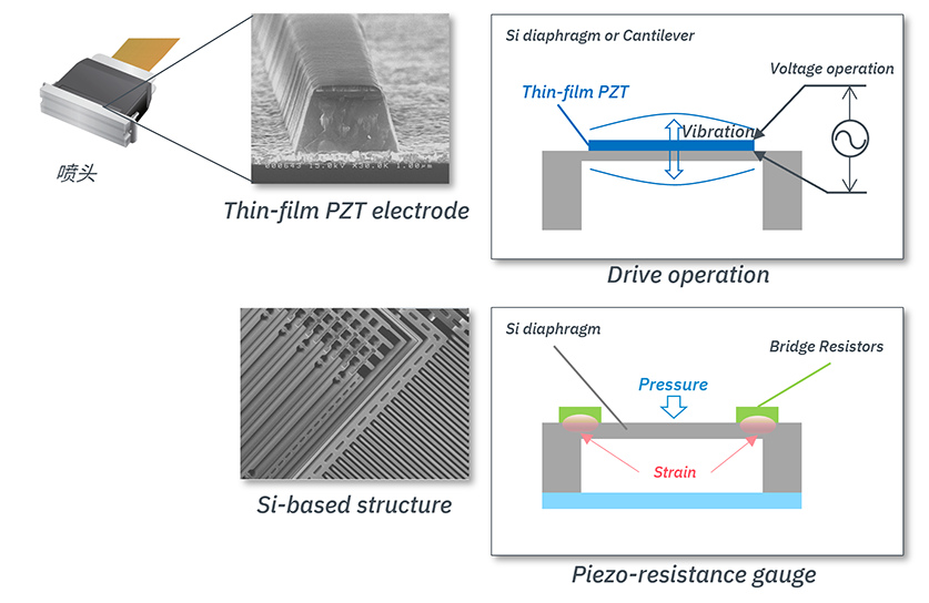 | 工艺技术 | PZT压电薄膜、双面Si加工、晶圆键合 |