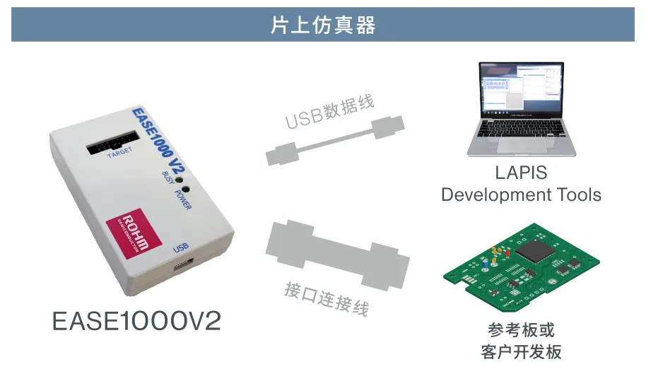 - 片上仿真器EASE1000 V2是通过与内置片上调试功能的实际设备连接,来支持板上软件调试和Flash写入的小型仿真器。