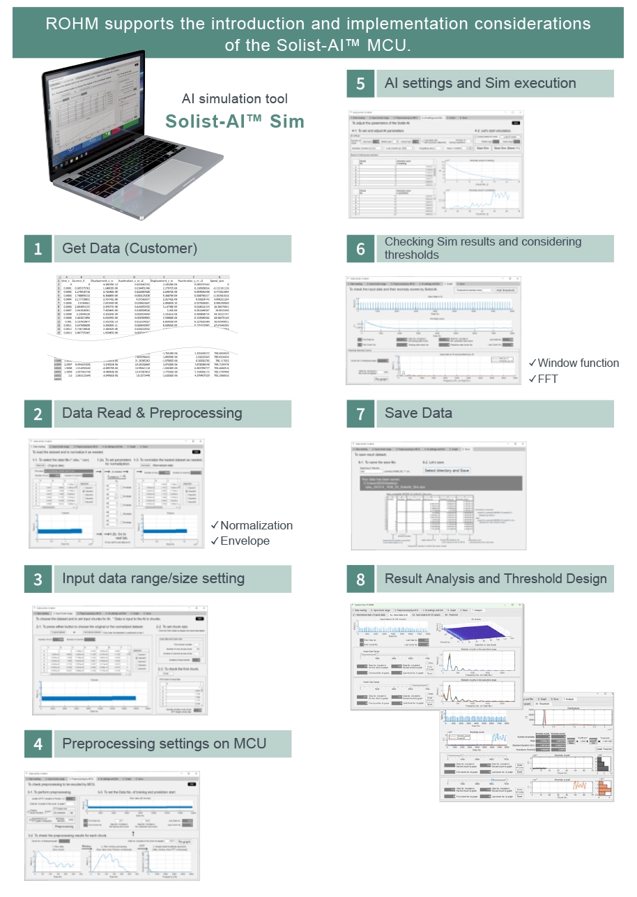 ROHM官网上提供异常检测用(无监督学习)和预测/参数估计用(有监督学习)的仿真工具。