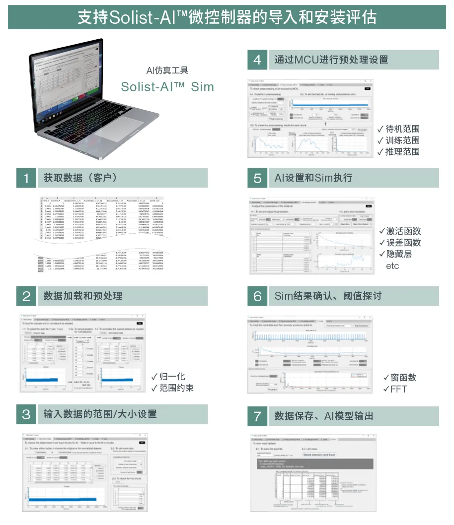 - 可通过Solist-AI™ Sim对数据加载、预处理、训练和推理范围、AI设置等进行调整,并通过仿真确认AI使用效果。