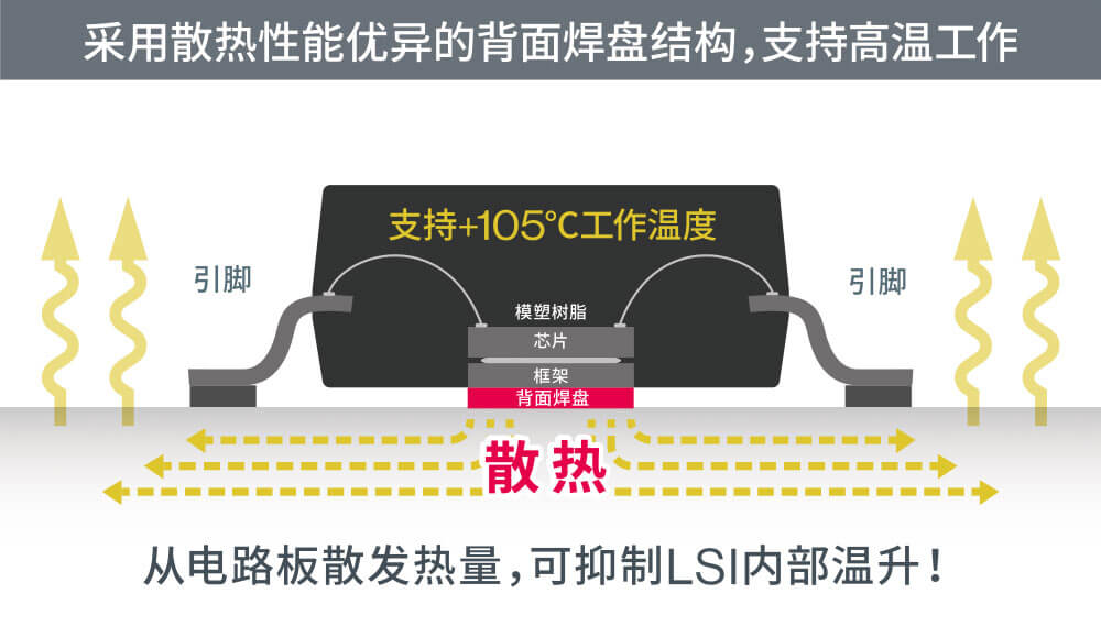 高可靠性,工作温度-40°C~+105°C, 支持车载应用 通过 "获得AEC-Q100 Grade 2认证的产品和满足同等标准要求的产品"