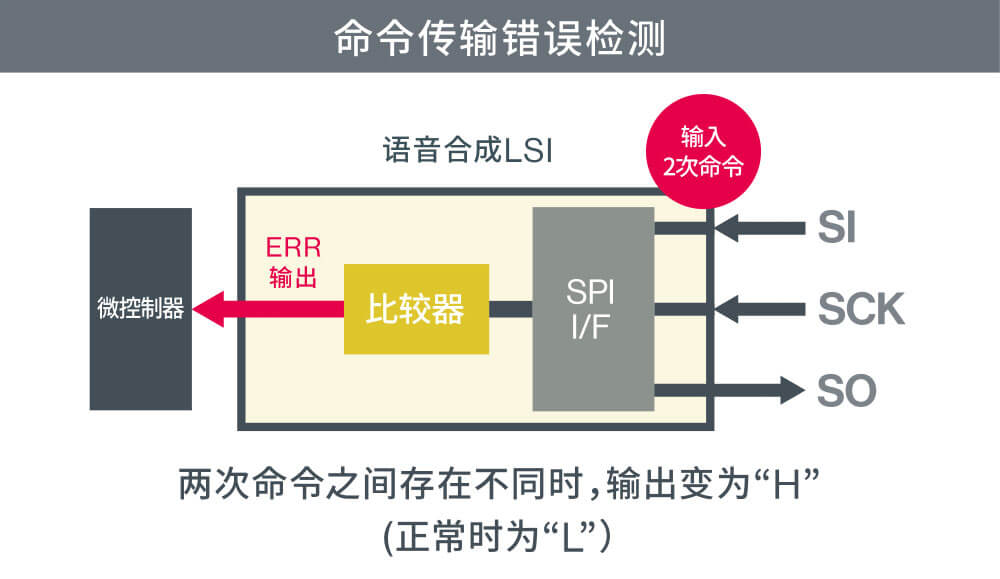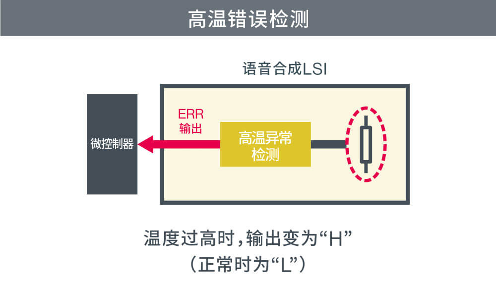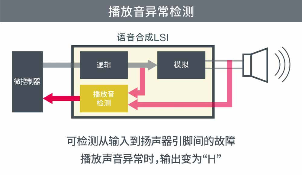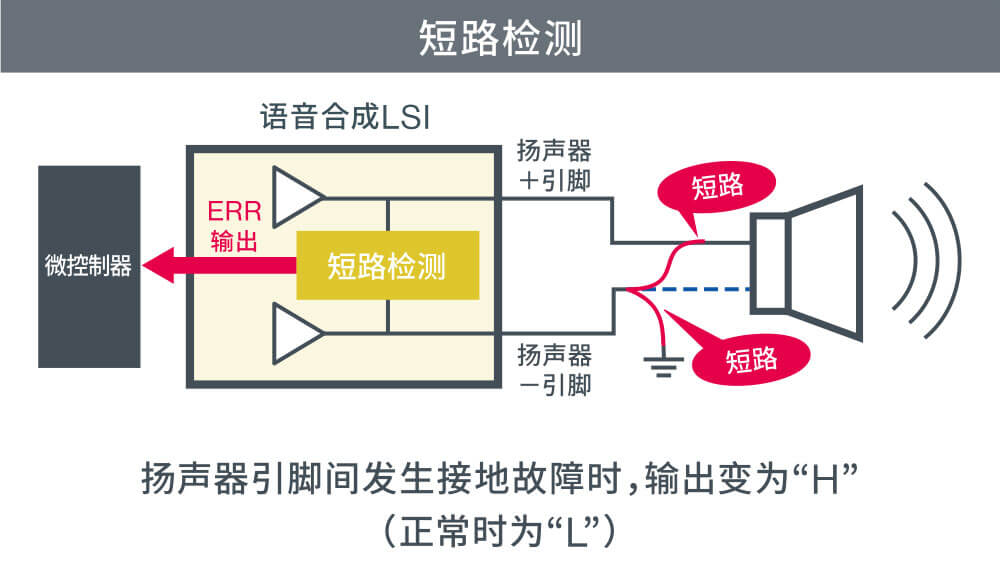 内置"播放音异常检测"、"扬声器引脚短路检测"、"高温异常检测"以及"命令传输错误检测"等丰富的故障安全功能,可以监测LSI的各种异常情况。