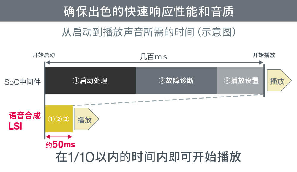 通过用硬件实现语音功能,即使在系统处于高负载的情况下,也可以通过简单的命令控制来确保车辆接近警告声出色的快速响应性能和音质。