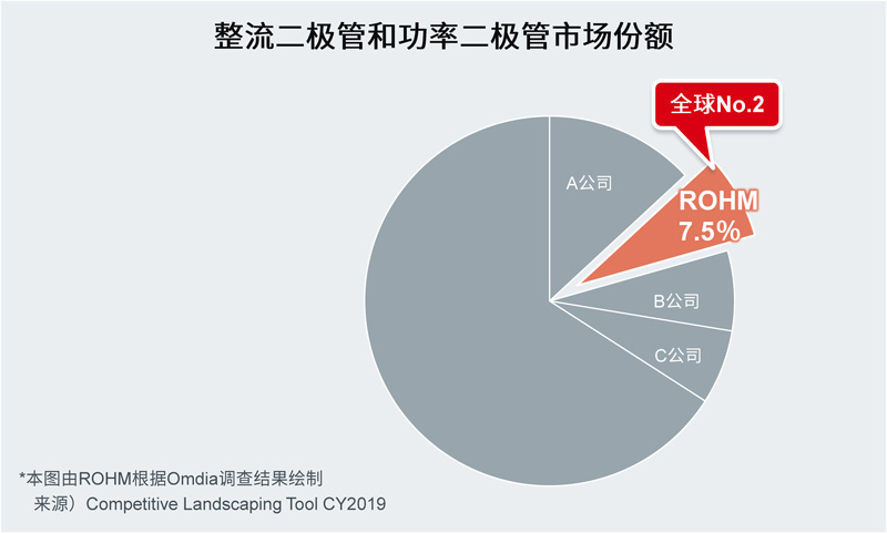 图1. 罗姆在整流二极管和功率二极管领域的市场份额