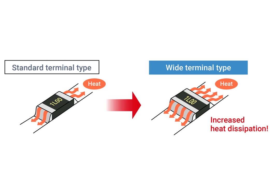 ROHM开发并确立了一系列创新型结构和设计技术,打造出性能显著优于普通产品的出色产品群。例如GMR系列电阻器的热性能,通过采用ROHM自有的触点结构和特有的合金材料,实现了出色的温度系数。相较于普通产品,在3W功耗耗散功率条件下ROHM产品的表面温度降低了57%。这使得在设计阶段就可以采用更低的温度降额,从而可以节省空间并降低成本。