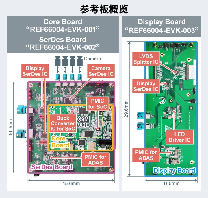 全球知名半导体制造商罗姆(总部位于日本京都市)与领先的车规芯片企业芯驰科技面向智能座舱联合开发出参考设计“REF66004”。该参考设计主要覆盖芯驰科技的智能座舱SoC*1“X9M”和“X9E”产品,其中配备了罗姆的PMIC*2、SerDes IC*3和LED驱动器等产品。另外,还提供基于该参考设计的参考板“REF66004-EVK-00x”,参考板由Core Board、SerDes Board、Display Board三部分组成。关于参考板的更详细信息,请通过销售代表或罗姆官网的“联系我们”页面进行垂询。