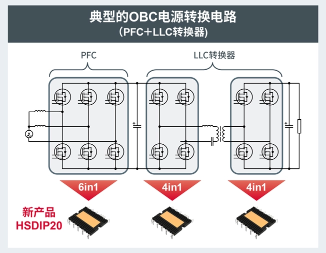 中国上海,2025年4月24日——全球知名半导体制造商ROHM(总部位于日本京都市)今日宣布,推出4in1及6in1结构的SiC塑封型模块“HSDIP20”。该系列产品非常适用于xEV(电动汽车)车载充电器(以下简称“OBC”)的PFC*1和LLC*2转换器等应用。HSDIP20的产品阵容包括750V耐压的6款机型(BSTxxx1P4K01)和1200V耐压的7款机型(BSTxxx2P4K01)。通过将各种大功率应用的电路中所需的基本电路集成到小型模块封装中,可有效减少客户的设计时间,而且有助于实现OBC等应用中电力变换电路的小型化。