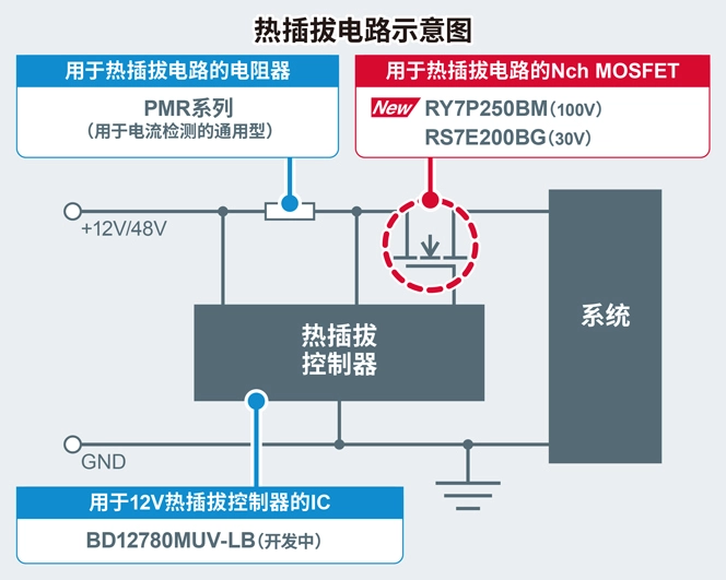 随着AI技术的飞速发展,数据中心的负载急剧增加,服务器功耗也逐年攀升。特别是随着配备生成式AI和高性能GPU的服务器日益普及,如何兼顾进一步提升电力效率和支持大电流这两个相互冲突的需求,一直是个难题。在此背景下,相较传统12V电源系统具有更高转换效率的48V电源系统正在加速扩大应用。另外,在服务器运行状态下实现模块更换的热插拔电路中,需要兼具更宽SOA范围和更低导通电阻的MOSFET,以防止浪涌电流*5和过载时造成损坏。新产品“RY7P250BM”在8×8mm尺寸中同时具备业界超宽SOA范围和超低导通电阻,有助于降低数据中心的功率损耗、减轻冷却负荷,从而提升服务器的可靠性并实现节能。