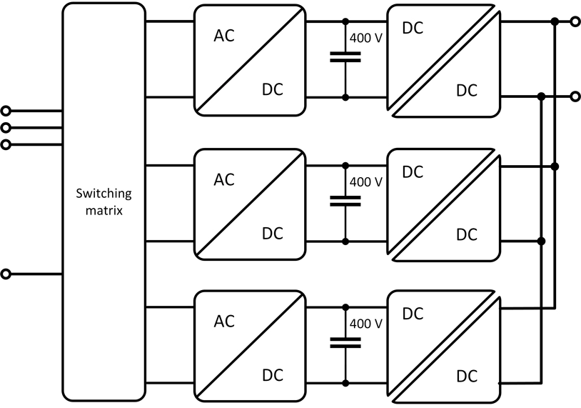 模块化架构需要更多元器件,从而导致直流链路整体上对储能容量要求提高,进而推高体积和成本。另外,模块化架构还需要额外配置栅极驱动器和电压、电流检测功能。相比之下,集中式架构所需的元器件更少,因此可实现更具成本效益的OBC,这使其已成为高功率密度OBC的首选架构。