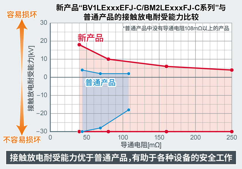 <新产品与普通产品的接触放电耐受能力比较>