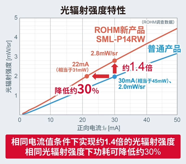 ROHM开发出实现业界超高光辐射强度的小型表贴型近红外LED