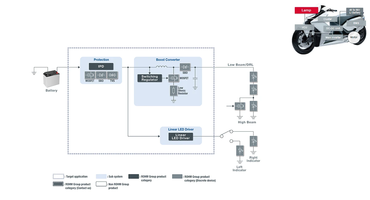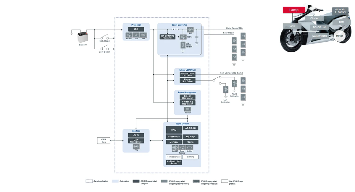 对于两轮车而言,其灯具不仅要具备基础的点亮功能,还需要满足不同国家的相关法律法规要求,比如光量和照射范围控制、前照灯和其他车灯的协同控制等要求。