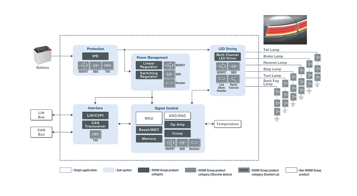 罗姆通过提供符合功能安全标准的高性能LED驱动器IC,为提高尾灯的可靠性贡献力量。