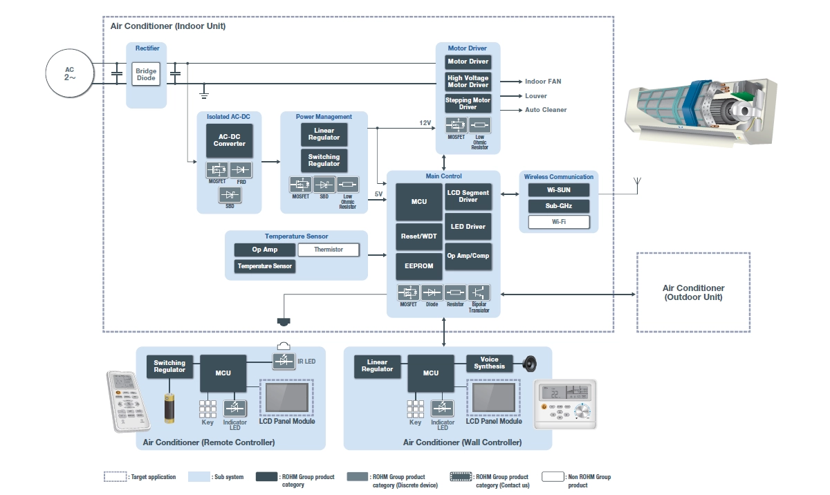 罗姆通过为逆变电路提供以功率元器件为主的解决方案来满足其节能需求。