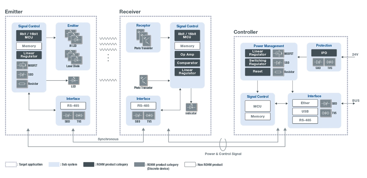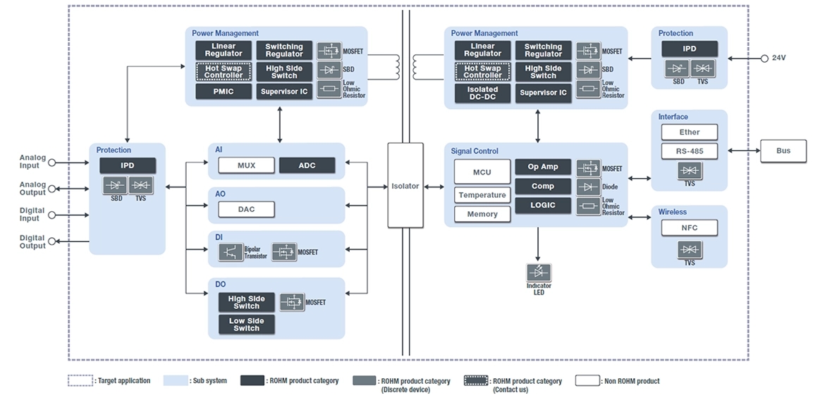 罗姆通过从电阻器到半导体及模块的丰富元器件产品以及这些产品相结合的丰富解决方案,助力实现“更节能”、“更高速”和“小型化”的FA设备。