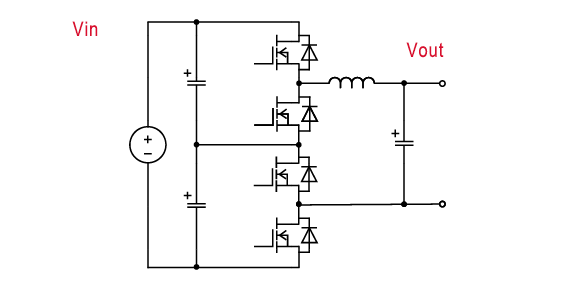 Since half of the total input voltage is applied to the device, it is effective for systems with higher input voltages. The same circuit can be configured as a voltage booster circuit by changing the control method.